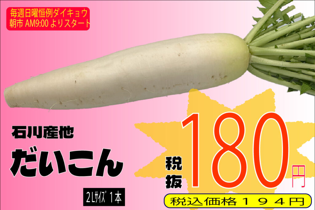 朝9時~12時までの3時間限定で朝市ダイキョウ元気市を開催いたします!