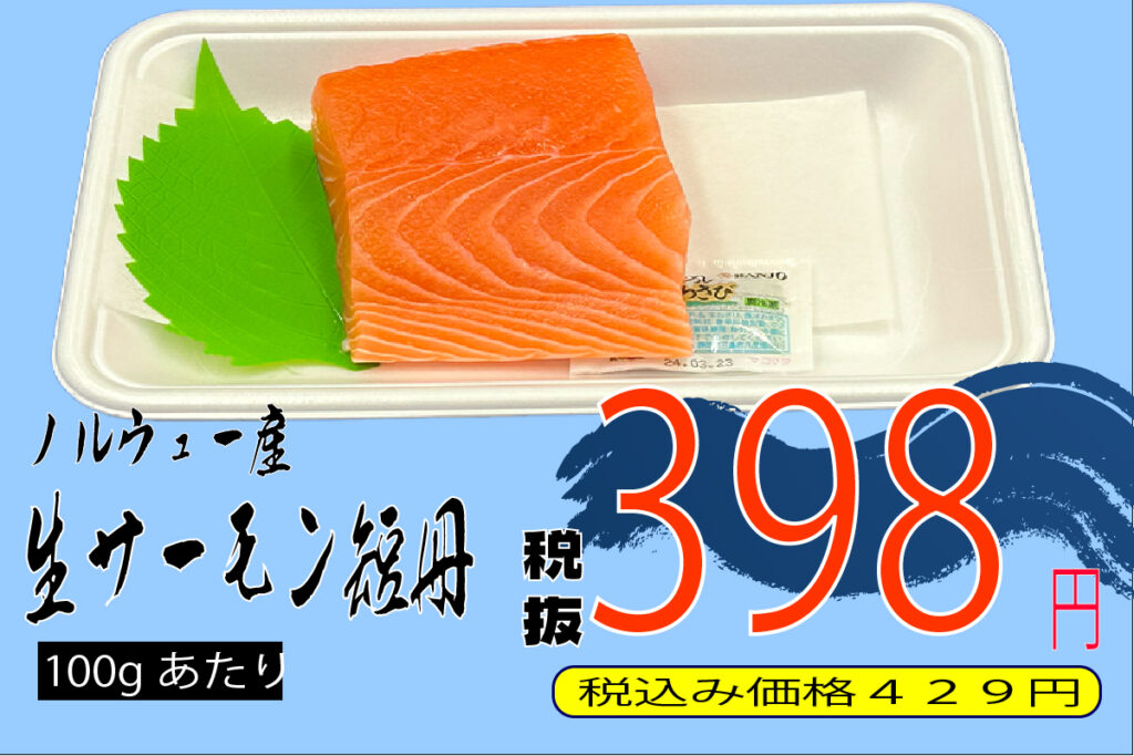 新鮮なお魚を中心に各部門(精肉、野菜、日配)などから