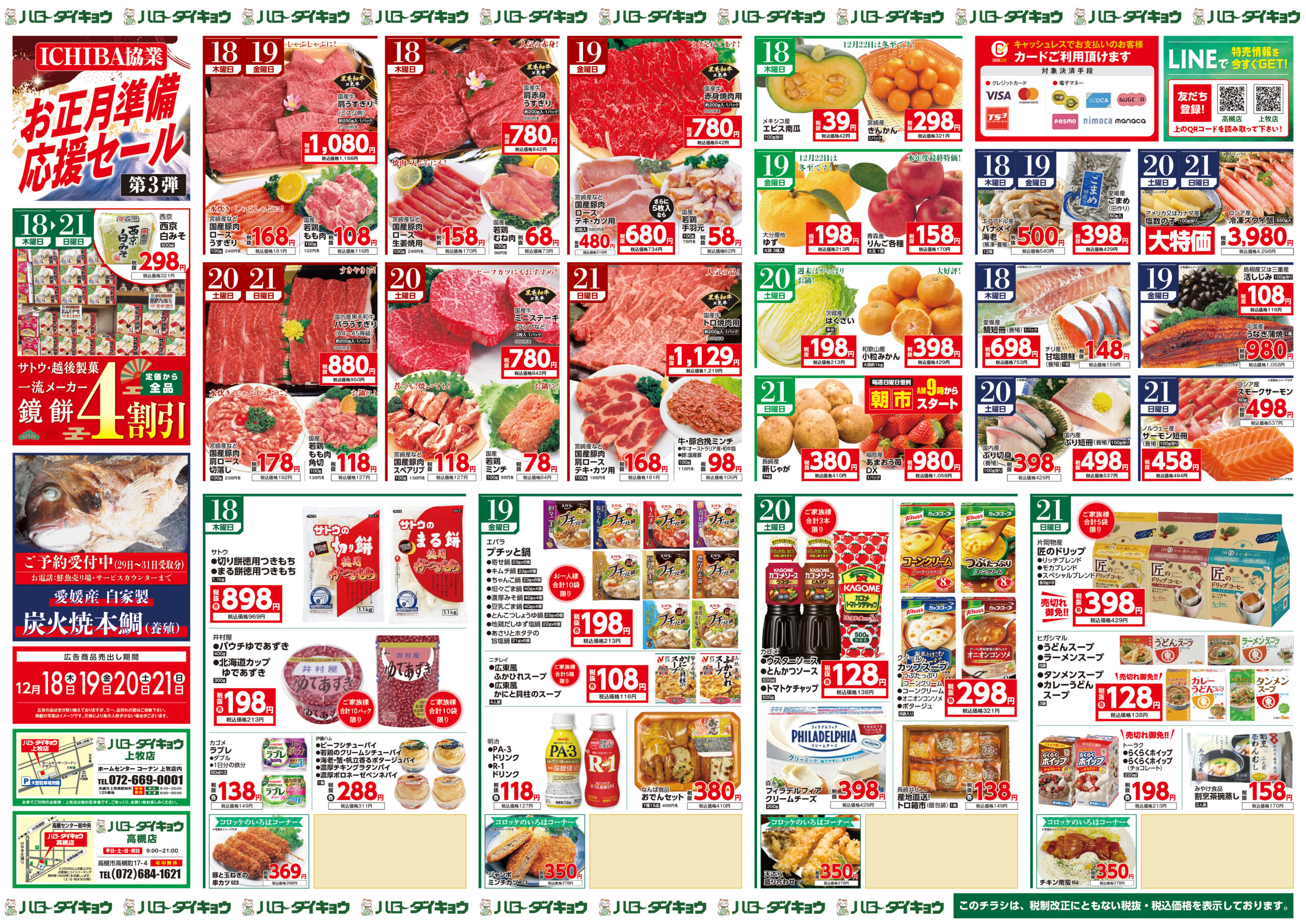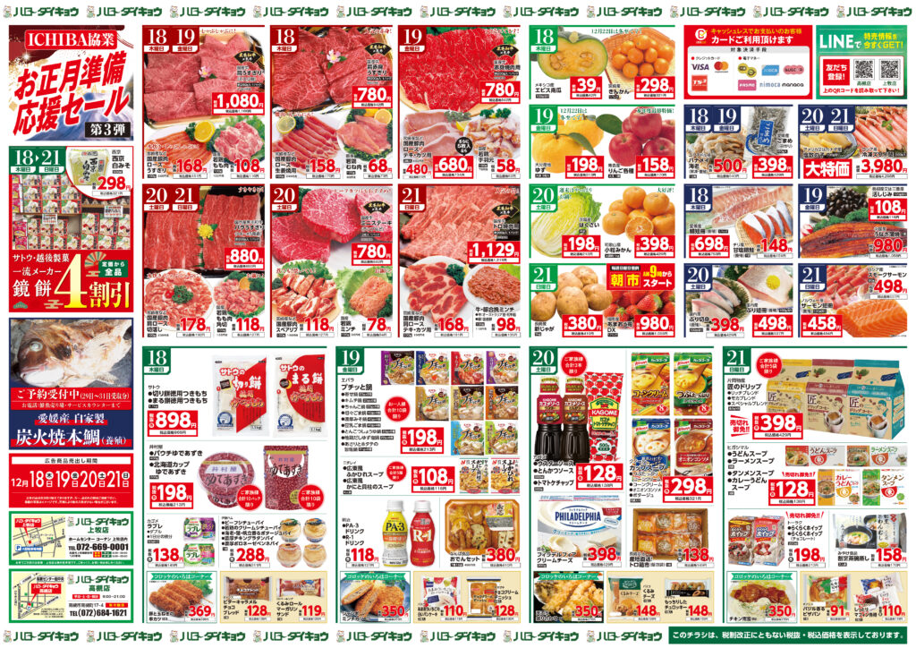 Categories 売り出し 12月18日(木)~21日(日)お正月準備応援セール!!大売出し!! Post author By ryuzo Post date 2023年8月16日 Sticky post 詳しくはこちらをクリック♪ ← ハローダイキョウのインスタグラムはこちら! → 愛されて50年!! 炭焼き 祝鯛