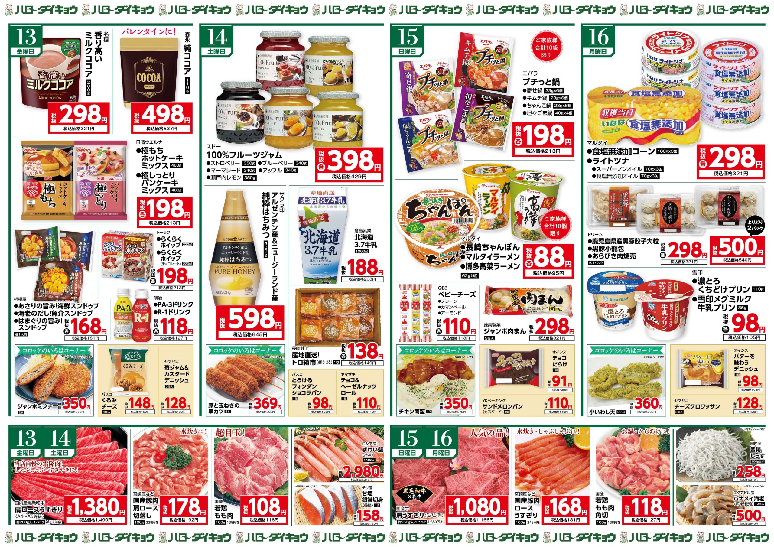 Categories 売り出し 2月13日(金)~16日(月)月に一度の大奉仕販売会!!大売出し!! Post author By ryuzo Post date 2023年8月16日 Sticky post 詳しくはこちらをクリック♪